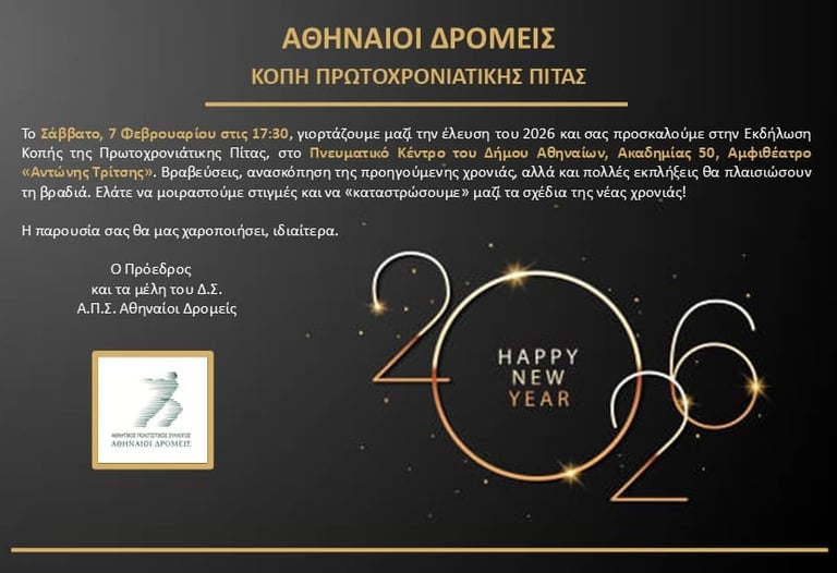 ΑΘΗΝΑΙΟΙ ΔΡΟΜΕΙΣ ΠΡΟΣΚΛΗΣΗ ΠΡΩΤΟΧΡΟΝΙΑΤΙΚΗ ΠΙΤΑ 2025-2026