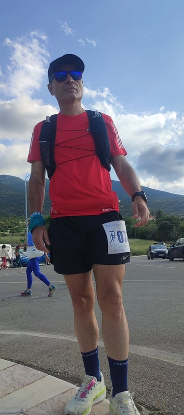 Ύστερα από αρκετά χρόνια δρομικής απουσίας ξεκίνησα να τρέχω ξανά το 2022, δοκιμάζοντας τις δυνάμεις μου σε αγώνες αντοχής των πέντε χιλιομέτρων αρχικά και σταδιακά αυξάνοντας τις αποστάσεις και δοκιμάζοντας διαδρομές σε άσφαλτο και χώμα, το 2023 βρέθηκα στην για πρώτη φορά στην εκκίνηση της κλασικής διαδρομή του Μαραθωνίου. Στις αρχές του 2024 μια μοναδική συνάντηση με οδήγησε στην πρώτη μου Ultra απόσταση του Βυζαντινού αγώνα. Έκτοτε αγάπησα αυτές τις αποστάσεις για τις απαιτήσεις τους, την πλήρη αντίληψη σώματος και δυνάμεων σε κάθε βήμα, για την στρατηγική, την υπομονή και την επιμονή απαιτούν.