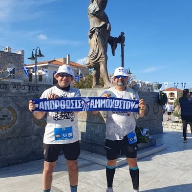 Πρόσφυγες από την ΑΜΜΟΧΩΣΤΟ, κάθε φορά που πάμε να τρέξουμε έναν αγώνα, τρέχουμε με το “ΔΕΝ ΞΕΧΝΩ” και το “ΑΜΜΟΧΩΣΤΟΣ ΕΠΙΣΤΡΟΦΗ” στην πλάτη, τρέχουμε με ένα όνειρο... να δούμε μια μέρα λεύτερη την Ελληνική ΚΥΠΡΟ και να τρέξουμε τον μαραθώνιο της αγαπημένης μας πόλης.