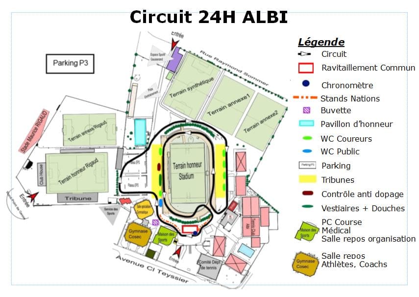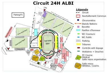 Ο αγώνας διεξάγεται σε ειδικά διαμορφωμένη διαδρομή μέσα και γύρω από το στάδιο του Albi.